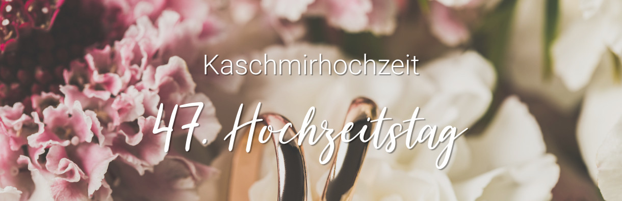 Die Kaschmirhochzeit feiert 47 Jahre Ehe. Kaschmirwolle ist besonders wertvoll und sehr teuer. Kaschmir ist ein sehr sanftes, warmes und wertvolles Wollmaterial und sehr fein. Eine Ehe, welche so lange hält, sollte genauso fein und teuer sein wie Kaschmir. Außerdem ist die Wolle sehr heikel. Man muss sie vorsichtig behandeln, um sie lange genießen zu können. Das ist auch in hohem Alter der Fall. Du und deine Partnerin werden gebrechlich und müsst gut aufeinander achten. Alles zur Kaschmir Hochzeit ... |